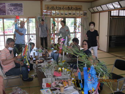 願 い事を書いた短冊を笹の葉につるし、おりひめ星に技芸の上達を願います。
